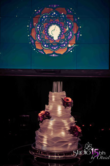 O vestido da valsa foi singular, tão ousado quanto a decoração da festa. A saia foi a clássica branca, como de costume, no entanto, a barra levou cores que lembram o por do sol e o mar. Ficou lindo e tenho certeza que deu o que falar entre as amigas que presenciaram o momento.